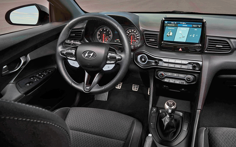 در کابین نسل جدید هیوندای ولوستر، نمایشگر ۷ اینچ سیستم اطلاعات و سرگرمی بهصورت استاندارد وجود دارد؛ اما امکان انتخاب نمایشگر ۸ اینچی در کنار آپشن نمایش اطلاعات فنی روی شیشه (HUD) نیز در اختیار مشتریان خواهد بود. فضای داخلی تیپهای پایه ۲ لیتری و توربو با گیربکس دستی، با روکشهای پارچهای تزئین شده است. تیپهای ۲ لیتری پریمیوم و توربوهای اتوماتیک به کابین با روکشهای چرم و پارچه و تیپ توربو آلتیمیت، گرانترین تیپ ولوستر ۲۰۱۹، به کابین تمام چرم با ترکیب دو رنگ مجهز شده است.