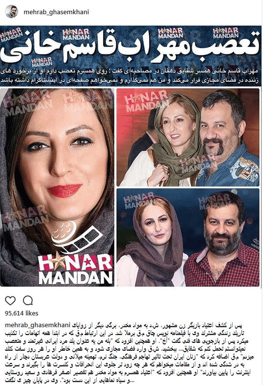 هنوز زمان زیادی از شایعه اعتیاد شقایق دهقان نمی گذرد که شایعه جدید پیرامون مهراب قاسمخانی و همسرش این روزها در شبکه های مجازی خبری دست به دست میچرخد و حکایت از تعصب زیاد این فیلمنامه نویس به همسر بازیگرش دارد که اجازه فعالیت در شبکه های مجازی را به او نمی دهد.