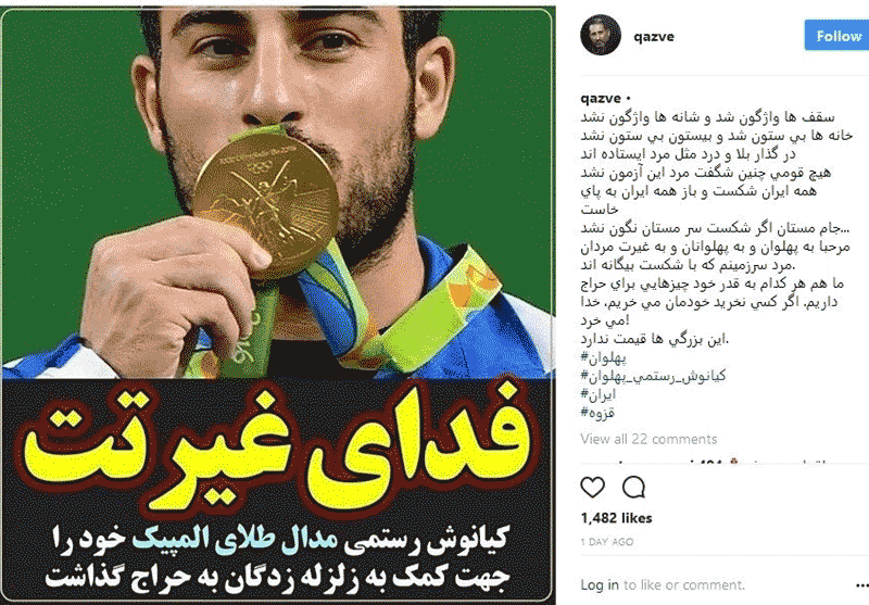 واکنش شاعر مشهور به اقدام خیرخواهانه مدال آور المپیکی برای زلزله زدگان+عکس