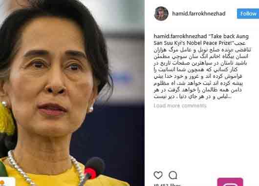 حمید فرخنژاد بازیگر سینما و تلویزیون به نسلکشی مسلمانان توسط بوداییان در میانمار واکنش نشان داد.