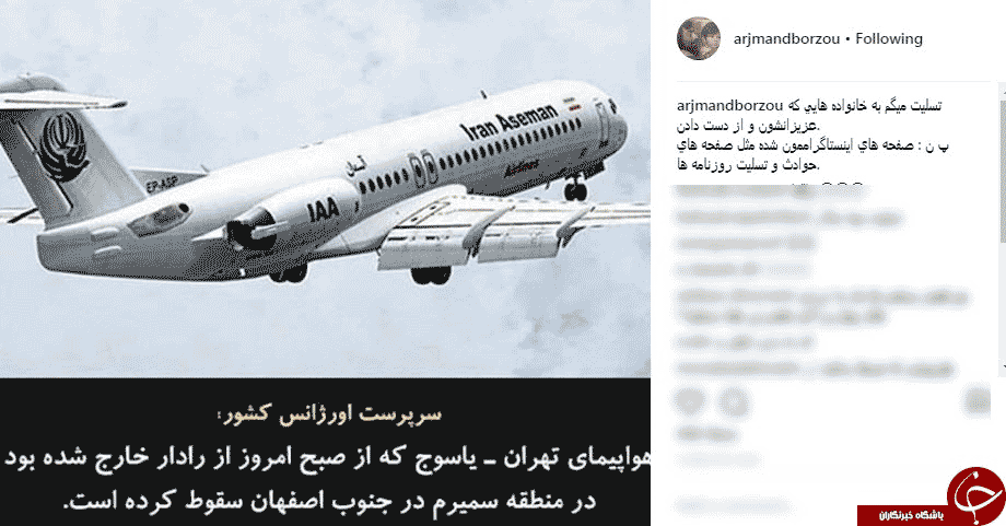جمعی از هنرمندان با انتشار پستی در صفحه اینستاگرام خود به خانواده های حادثه دیدگان در سقوط هواپیمای تهران- یاسوج تسلیت گفتند.