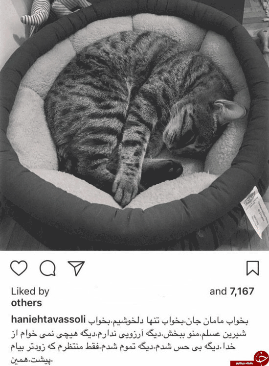 هانیه توسلی برای مرگ گربه خود در اینستاگرام پستی به اشتراک گذاشت.