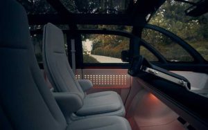 از نظر ظاهری تمام کابین خودرو با شیشه احاطه شده است. جلو و عقب این ون نیز طراحی تقریبا یکسان دارند. به نظر میرسد که کانو خودروی خیلی زیبایی نباشد؛ ولی طراحی آن بسیار کاربردی است. درون کابین صندلیهای نیمکتی منحنی تعبیه شدهاند که همگی دارای روکش چرمی هستند. دو صندلی جلویی هم قابلیت چرخش دارند تا رودر روی سرنشینان پشتی قرار گیرند. بهگفتهی کانو این خودرو به تمامی سخت افزارهای لازم مربوط به خودروهای کاملا خودران مجهز خواهد شد. البته خودرویی که در تصویر دیده میشود دارای فرمان و پدالهای گاز و ترمز نیز است.