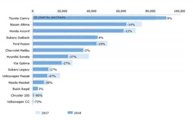 تویوتا کمری جدید گوی رقابت از شاسیبلندها در آمریکا را ربوده و عنوان پرفروشترین خودروی سه ماهه اول ۲۰۱۸ را از آن خود کرد.