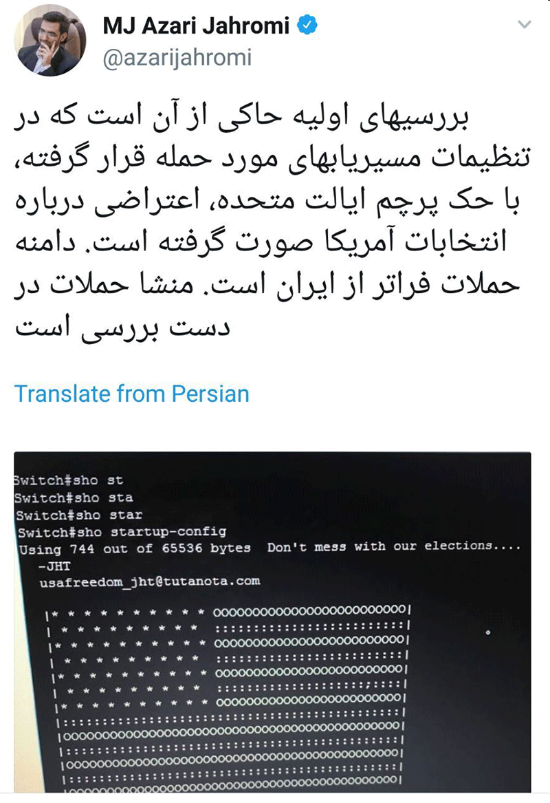 آذری جهرمی در جدیدترین توئیت خود نوشت: حملات فراتر از ایران است. منشا حملات در دست بررسی است.