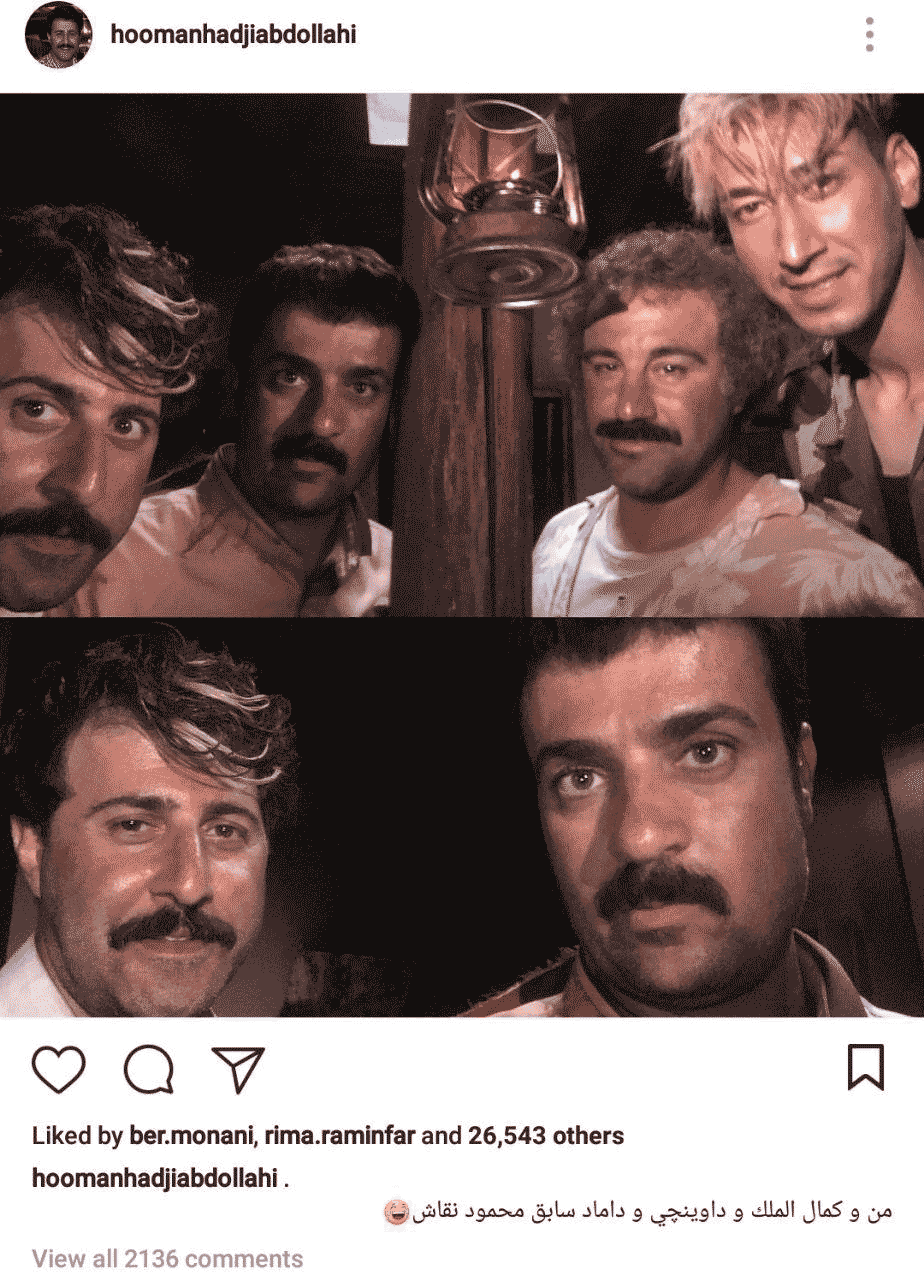 هومن حاجی عبداللهی با انتشار عکسی از یک صحنه قسمت سیزدهم سریال «پایتخت» در اینستاگرام نوشت: «من و کمالالملک و داوینچی و داماد سابق محمود نقاش.»