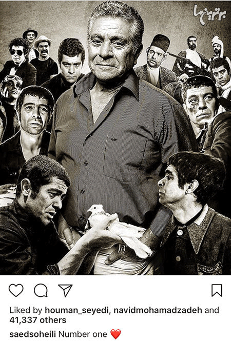 عکسی که ترکیبی از نقش های ماندگاری است که بهروز وثوقی در سینمای سال های پیش از انقلاب خلق کرده است، کاراتر هایی نظیر قیصر، رضا موتوری، داش آکل، مجید ظروفچی و … .