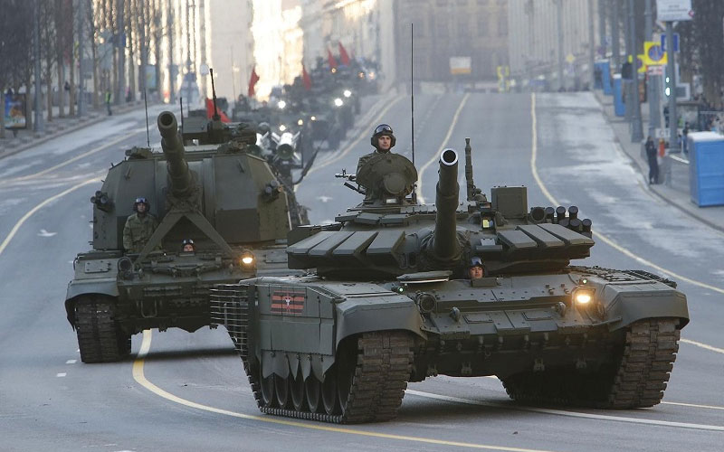 تجهیزات نظامی روسیه در تمرین برای رژه “روز پیروزی” در مرکز مسکو، ۳ مه ۲۰۱۷