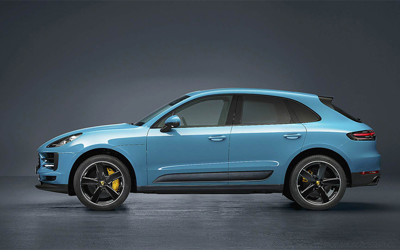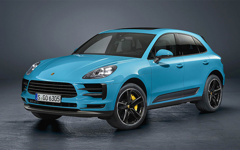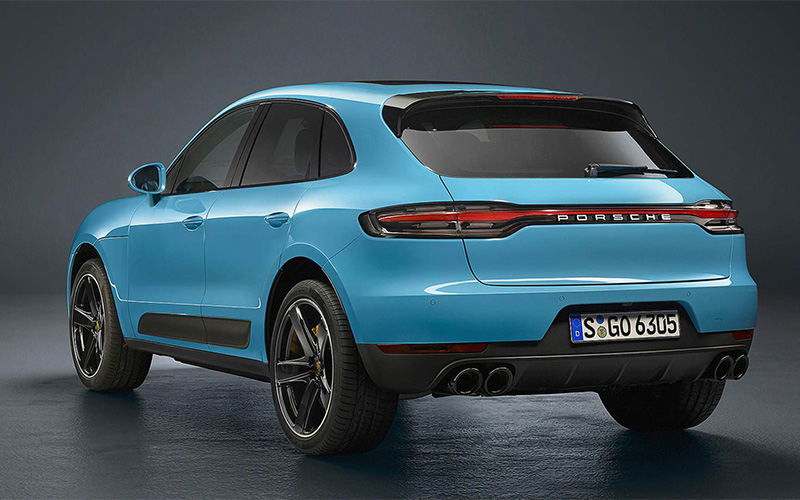 پورشه ماکان در این عکسها با رنگ جدید میامی آبی رنگآمیزی شده است. بخشهایی از بدنه که رنگ سیاه دارند، کنتراست دلپذیری برای این شاسیبلند محبوب ایجاد میکنند. البته پورشه رنگهای دیگری مانند سبز متالیک مامبا، نقرهای متالیک دولومیت و خاکستری نوک مدادی را به لیست آپشنها اضافه میکند. همچنین در نسخه فیسلیفت پورشه ماکان ۲۰۱۹، از رینگهای ۲۰ و ۲۱ اینچی استفاده خواهد شد.