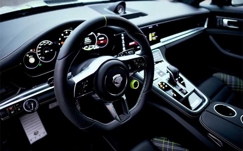 داخل کابین پانامرا تک آرت استفاده از دوخت رنگی روی فرمان و صندلیها به چشم میخورد و با طراحی خارجی خودرو نیز هماهنگی کاملی دارد. روی غربیلک فرمان اسپرت پانامرا نیز یک کلید سبز رنگ نصب شده که با استفاده از آن میتوان حالتهای مختلف رانندگی را تغییر داد. در انتها نیز باید به تغییرات جزیی همچون پدالهای آلومینیومی و نورپردازی زیر درها اشاره کرد.