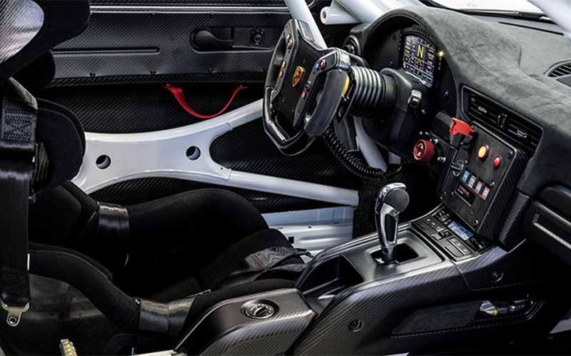 داخل کابین، تنها برای راننده صندلی وجود دارد و همانطورکه انتظار میرود، رولکیج بزرگی برای ایمنی بیشتر راننده قرار گرفته است. غربیلک فرمان کربنی و صفحه داشبورد دیجیتال برگرفته از پورشه ۹۱۱ GT3 R و مهار مسابقهای ششنقطهای، ازجمله سایر امکانات ۹۱۱ GT2 RS Clubsport بهشمار میروند. این مدل درحقیقت خودروی اسپرت است؛ اما هنوزهم در آن از سیستم تهویهی مطبوع استفاده میشود تا هنگام گرمشدن در مسابقه، راننده را خنک نگه دارد.