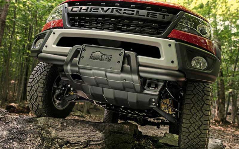 اما کلرادو ZR2 بایسون؛ پیکاپی که با تلاش شورولت و تیونینگ American Expedition Vehicles دستخوش زیباسازی ظاهری و بهبود قطعات مکانیکی متعدد شده است. این خودرو با ایمنی بالا، توانایی عبور از مسیرهای مختلف را دارد. عمدهی تغییرات این مدل برای حفظ و حراست از بدنهی خودرو هنگام عبور از مسیرهای دشوار صورت گرفته است تا شاهکار شورولت بدون دردسر و مصون از هر آسیبی راه خود را ادامه دهد. به عنوان مثال، پنج صفحهی ضربهگیر (Skid Plate) از جنس فولاد ضدزنگ در قسمت تحتانی خودرو قرار گرفتهاند.