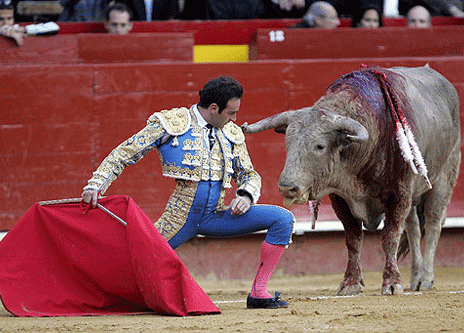 اسپانیایی ها قربانی کردن گاو را مبارک می دانند و ریشه اش را افسانه های گلیگمش گرفته اند و از اجداد رومانیایی و یونانی شان این ماجراجویی ها را به ارث برده اند. بعد از سه مرحله گاوبازی، وقتی ماتادور اصلی (او شش نفر نیروی کمکی دارد) گاو را به قتل می رساند، لحظه ای که گاو جان می دهد و روی پاهای جلویش زانو می زند و در کسری از ثانیه به یک طرف واژگون می شود، گوش و دمش را می برند و گاو نگون بخت را به قصابی می برند.