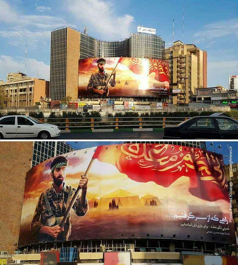 تصویر شهید حججی بر روی دیوار نگاره میدان ولیعصر