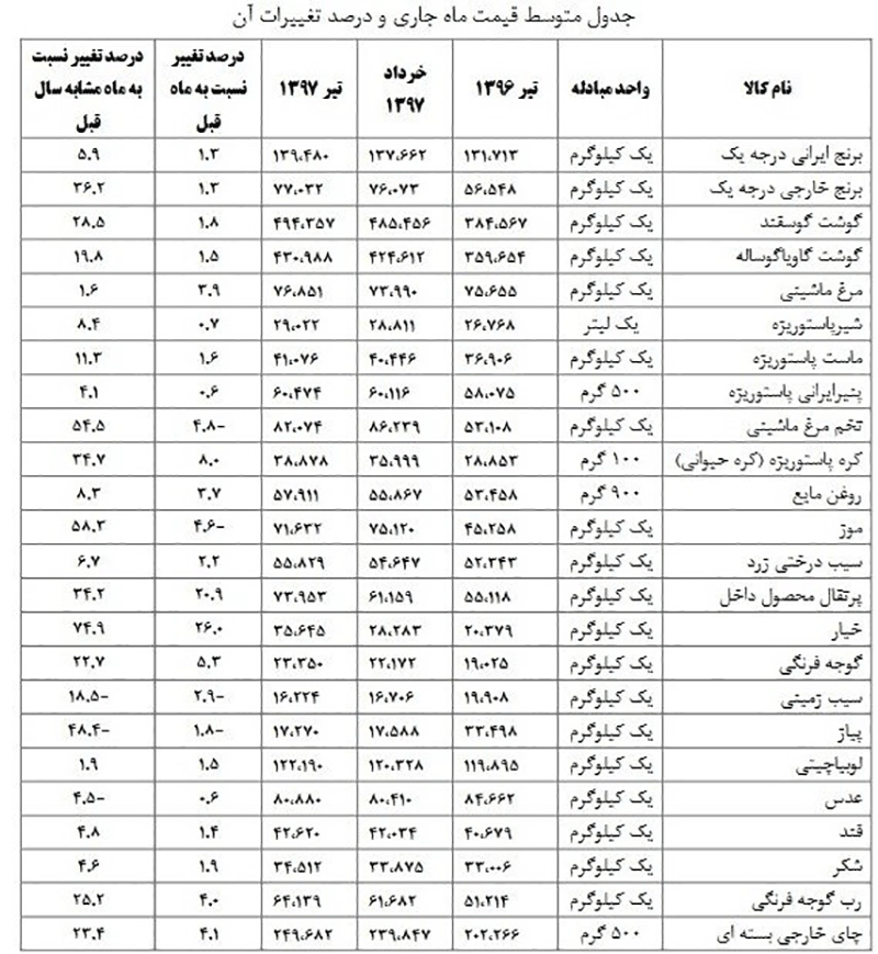 قیمت اقلام خوراکی در مناطق شهری طی تیرماه سال جاری با تغییرات عمدهای نسبت به ماه مشابه سال گذشته مواجه بوده است.