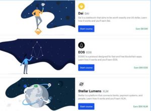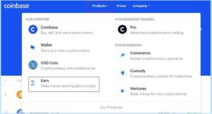 Coinbase یک برنامه آموزشی است که برای یادگیری رمزارزها توسط مردم، مبالغی را پرداخت میکند. این وبسایت دربردارنده برنامههای آموزشی مختلف و ارزهای دیجیتالی متنوع است. به منظور کسب درآمد با این روش ابتدا بایستی به آدرس اینترنتی www.coinbase.com مراجعه کرده و با استفاده از ایمیل خود ثبتنام نمایید. سپس بر روی تب Products رفته و بر روی گزینه Earn کلیک کنید. بدینترتیب به صفحه اختصاصی محتوای آموزشی منتقل میشوید. پاداش مشارکت در هر برنامه در مقابل نام آن درج شده است. با کلیک بر روی دکمه Start course و مشاهده محتوا، اکانت شما به اندازه مبلغ اعلام شده شارژ میشود.