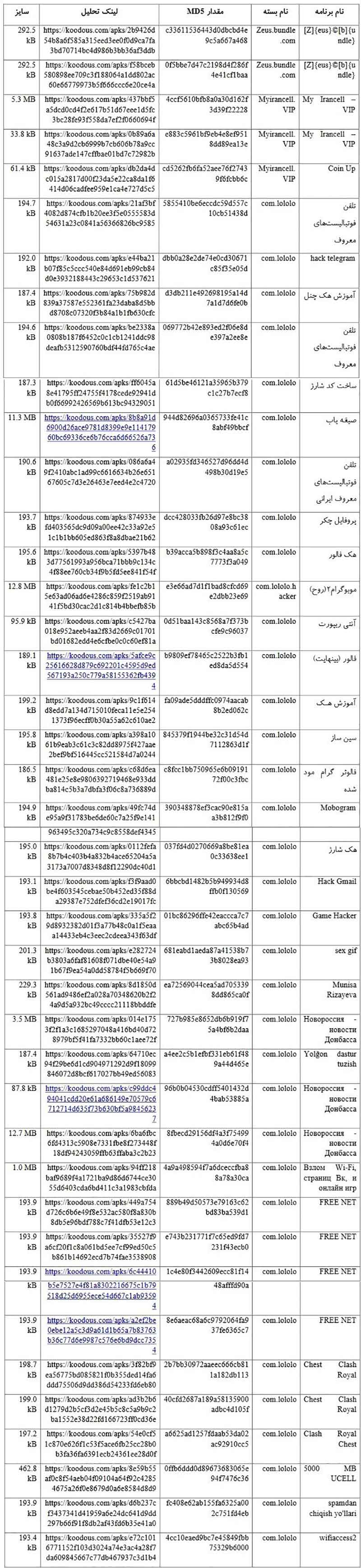 ***لیست برنامههای دارای باجافزار زئوس