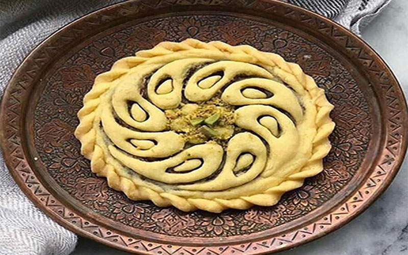 محتویات : آرد، روغن جامد یا کره، تخممرغ، شکر، شیر، هل و وانیل، خرمای بدون هسته، مغز گردوی خرد شده، هل، جوزهندی، رازیانه و زنجبیل و پودر پسته