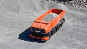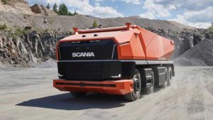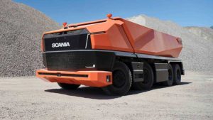 اسکانیا از اولین کامیون کاملاً خودران بدون کابین برای انجام وظیفه در معادن و اماکن ساختمانی رونمایی کرد که از پیشرانهی احتراق داخلی با سوخت تجدیدپذیر بهره میبرد.