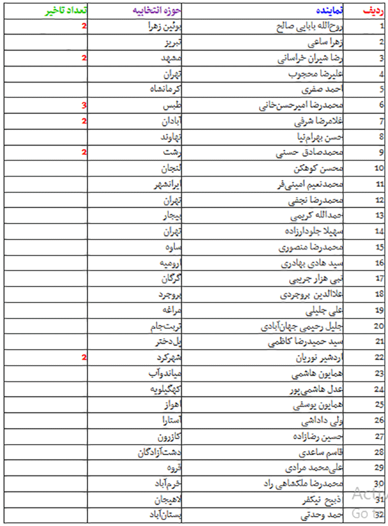 کدام نمایندگان در ۲ ماه گذشته دیر به مجلس رسیدند؟