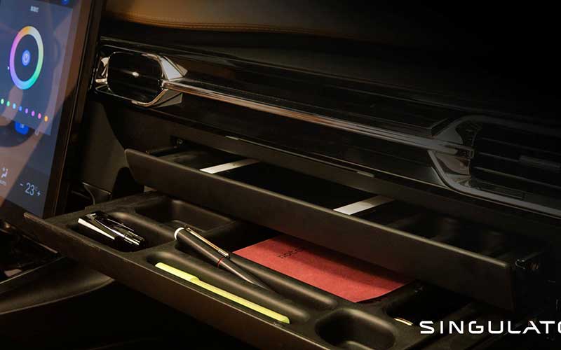 هنگامی که به سمت داخل کابین حرکت میکنید، چیزهای بیشتری وجود دارند که باعث جذابیت کراساور سینگولاتو iS6 میشوند. اولین چیزی که جلب توجه میکند، سیستم اطلاعاتی و سرگرمی غولپیکر خودرو است که در نگاه اول حس احترام هر بینندهای را برمیانگیزد. این سیستم مجهز به صفحه نمایش لمسی ۱۵.۶ اینچی با قابلیت گردان است، بنابراین میتوان از آن در هر دو حالت افقی و عمودی استفاده کرد. پنل ابزار دیجیتال در جلوی راننده نمایشگری به طول ۱۲.۳ اینچ دارد که در ترکیب با صفحه نمایش هدآپ ۱۶.۴ اینچی بسیار فوقالعاده است؛ اگرچه این صفحه نمایش بزرگ است، اما هنوز هم در مقایسه با صفحه نمایش ۲۴ اینچی HUD هدآپ مورد استفاده در لکسوس LS کوچک به شمار میرود.