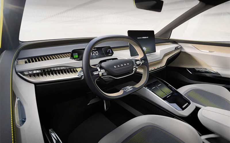 موضوع دیگری که خیلی جلب توجه میکند، نحوه طراحی فضای داخل کابین و بهطور مشخص، داشبورد است. این شیوه طراحی برای اشکودا بسیار جدید و آیندهنگرانه است و فاصله زیادی با روش معمول این شرکت برای طراحی داشبورد دارد. چنین طراحی شگفتآوری نشان میدهد که خودروساز جمهوری چک آماده است تا تغییرات زیادی در فضای داخل محصولات خود انجام دهد تا بتواند مشتریان بیشتری جذب کند.