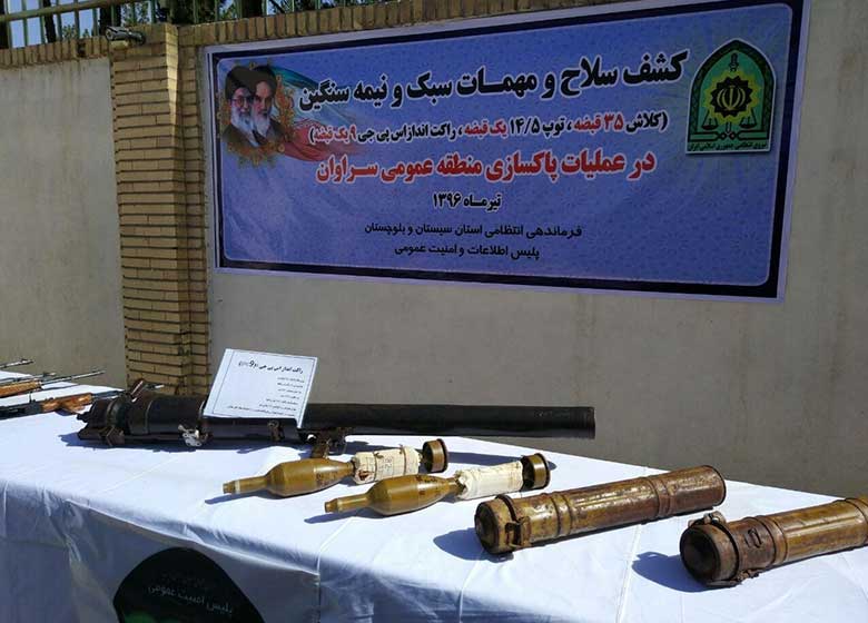 فرمانده انتظامی استان سیستان و بلوچستان افزود: این محموله که در پی یک عملیات اطلاعاتی پیچیده با استفاده از نیروهای نفوذی نیروی انتظامی استان در گروهک جیشالظلم کشف شده شامل ۳۵ قبضه سلاح جنگی کلاشینکف، توپ ضد هوایی ۴.۵ میلیمتری با برد ۷ کیلومتر به همراه دهها فشنگ و ۲ قبضه سلاح سنگین SPG9 و مقادیر زیادی مهمات است.