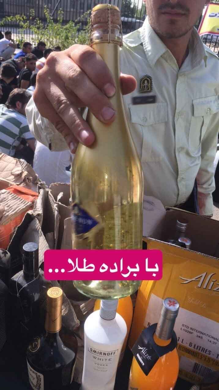 اما یکی از جالبترین کشفیات به دست آمده از این اراذل و اوباش شیشههای رنگارنگ مشروبات الکلی بود که در میان آنها یکی از این شیشهها، شیشهای طلایی بود که به گفته تعدادی از دستگیر شدگان، حاوی یکی از گرانترین مشروبات الکلی بوده و در تولید آن از برادههای طلا استفاده شده است.