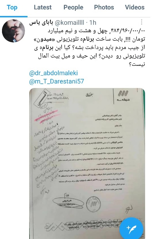 «بازتاب»، آرش خداپرست- بر اساس نامه ای که به آن اشاره شد، علی فروغی- مدیر شبکه سوم سیما پس از معرفی هاشمی گلپایگانی به عنوان تهیه کننده برنامه تلویزیونی میدون به حجت الله عبدالملکی- وزیر کار و نیز توضیح در مورد هزینه های ساخت این برنامه تلویزیونی، به وزیر کار اطلاع می دهد که هزینه ساخت ۷۸۰ قسمت از برنامه تلویزیونی میدون چیزی حدود ۴۸میلیارد و ۵۰۰ میلیون تومان ارزیابی می شود.