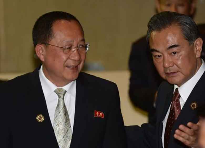 وزیران خارجه کره شمالی (چپ) و چین در نشست مانیل – چین مذاکره برای حل بحران کره را لازم دانسته اما ری گفتگو با کره جنوبی را رد کرده است