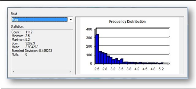 به گفته این محقق زلزلهشناسی بر اساس شکل ذیل از حدود ۱۱۰۰ زلزله رخ داده در این منطقه که میانگین عددی آنها حدود بزرگی ۳ را نشان میدهد، میتوان دید که ۴ زمینلرزه در طی این ۱۲ سال اخیر با بزرگای ۵ و بالاتر از آن تا ۵.۲ بودهاند. ۳۷ زلزله بین ۴ تا ۵ و مابقی زمین لرزههای خرد بودهاند. این تعداد از زلزله شامل زلزلههای کوچکتر از ۲.۵ نمیشود.