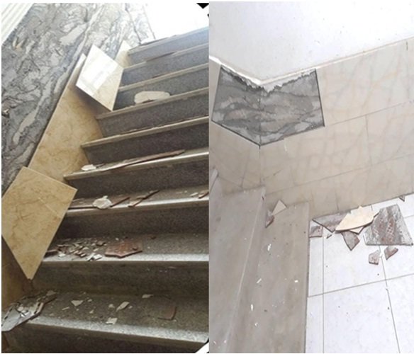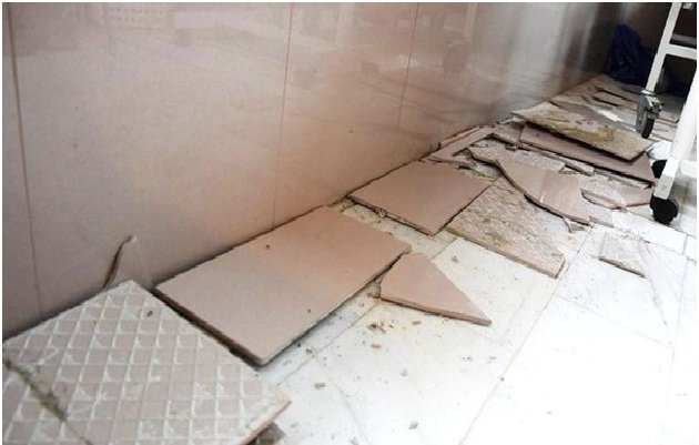 ریزش مصالح رویه دیوار داخلی بیمارستان از جمله کاشی و سرامیک به دلیل جداشدگی از سطح