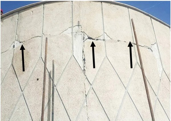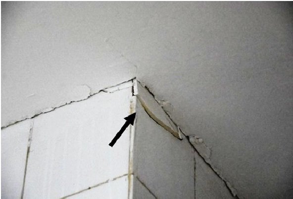 بروز جدایی در محل اتصال دیوار به سقف و شکستن مصالح پوششی