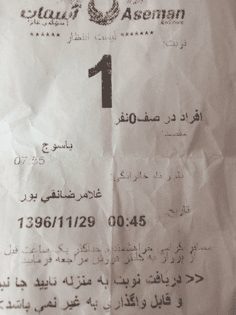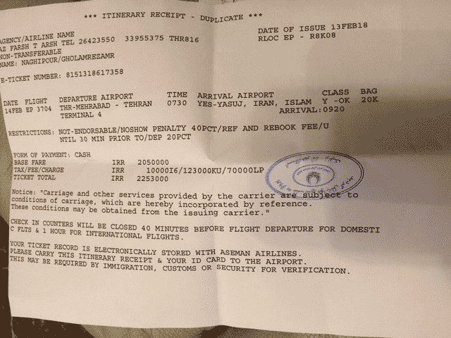 وی افزود: لذا از این سفر خودداری کردم و شنبه مجددا برای خرید بلیت به مقصد یاسوج اقدام کردم اما سایت بسته بود. تماس گرفتم و گفتند “ساعت ۲۴ به بعد برای اخذ شماره به فرودگاه مراجه کن که صبح پرواز انجام میشود”. ساعت ۴۵ دقیقه بامداد به فرودگاه مهرآباد رفتم و شماره گرفتم. اعلام کردند که ” ساعت ۷:۳۰ صبح برای گرفتن بلیت مراجعه کنید”. تعداد مسافرها برای لیست انتظار دو یا سه نفر بود. کارت ملی و شماره را از من گرفتند و بدون سوال و جواب بلیت را صادر کردند. هنگامی که فیش را به من دادند مشاهده کردم که قیمت بلیت ۲۹۳ هزار تومان است.