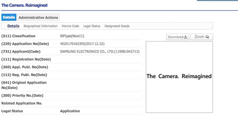 سامسونگ، عبارت جدیدی در کره جنوبی به ثبت رسانده است که تغییرات احتمالی در دوربین گلکسی اس ۹ و گلکسی اس ۹ پلاس را فاش میکند؛ انتظار میرود سامسونگ از عبارت «دوربین؛ مجدداً مجسم شده است» در تبلیغات تجاری برای گوشیهای پرچمدار جدید خود استفاده کند.