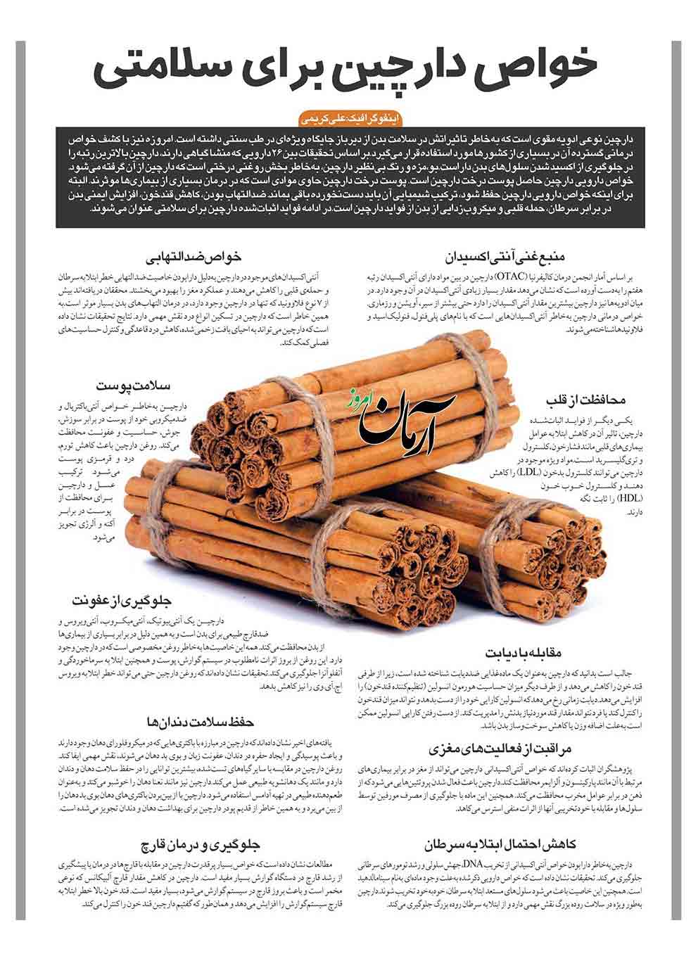 دارچین نوعی ادویه‌‌ مقوی است که به‌خاطر تاثیراتش در سلامت بدن از دیرباز جایگاه ویژه‌ای در طب سنتی داشته است.