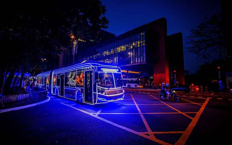 چراغانی معابر و خودروهای عمومی به مناسب فرار رسیدن میلاد مسیح و سال نوی میلادی در سائو پائولو