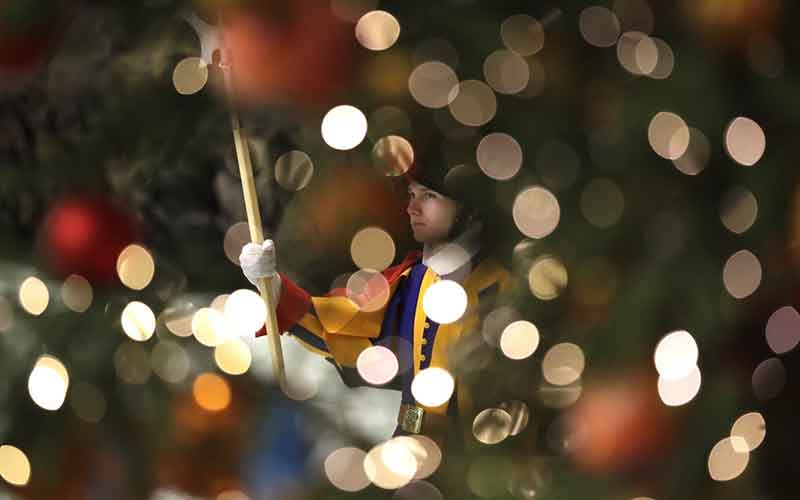 یکی از محافظان سوئیسی پاپ فرانسیس، هنگام سخنرانی هفتگی وی در واتیکان