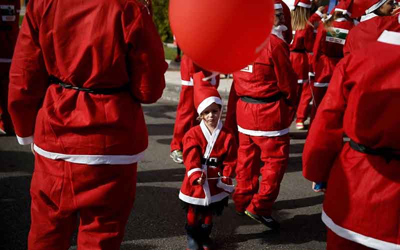 یک دختربچه در لباس بابانوئل در آتن، پایتخت یونان