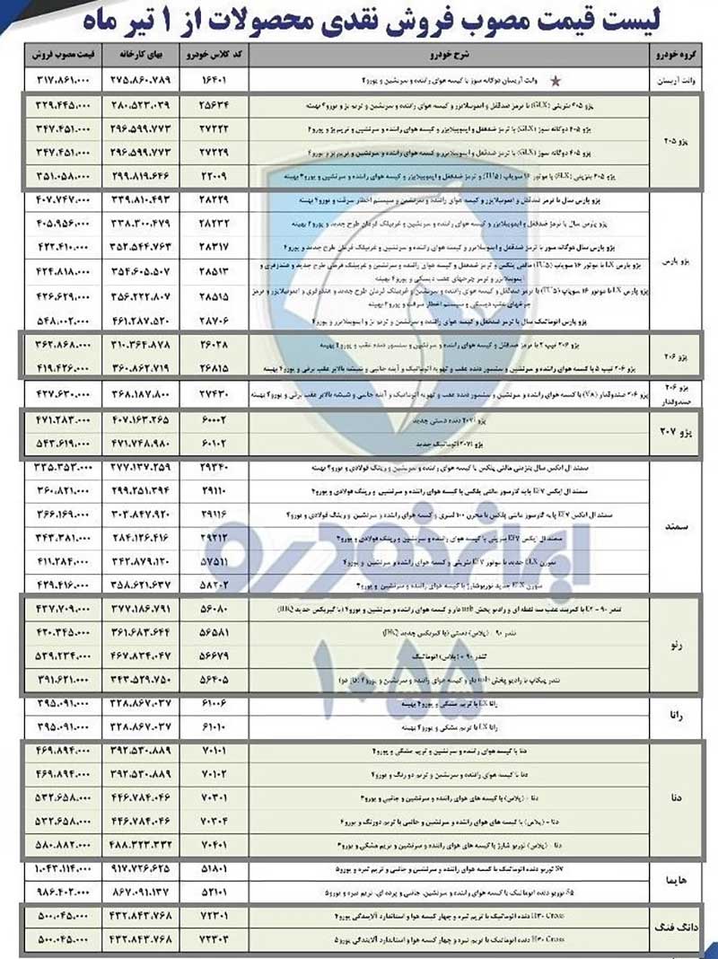 برهمین اساس قیمت خودروهای پژو۲۰۶ تیپ ۲، پژو۲۰۷ اتوماتیک و دنده ای، پژو ۴۰۵ ، رنو ، دنا و دانگ فنگ افزایش پیدا کرده است.