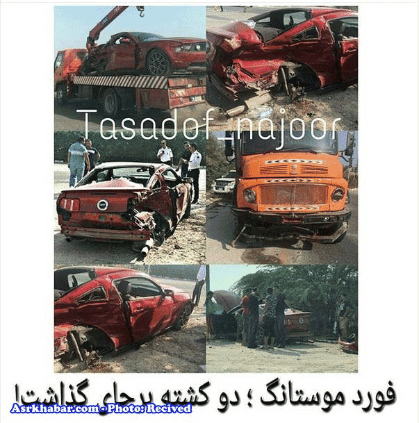 علت حادثه : عدم رعایت حق تقدم موستانگ در فرعی به اصلی با سرعت بالا دو سرنشین عقب به دلیل نبستن کمربند فوت شدند دو دختر بودند اما دو سرنشین جلو سالمند.