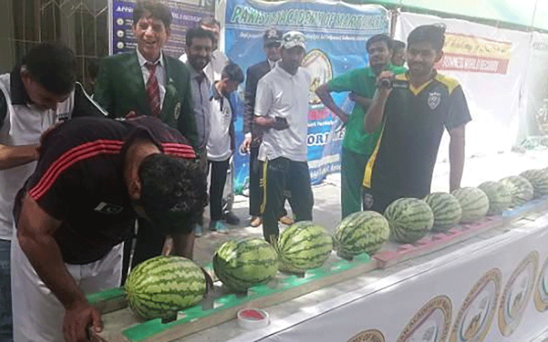 شکستن ۵۱ هندوانه با سر و ثبت رکورد جهانی
