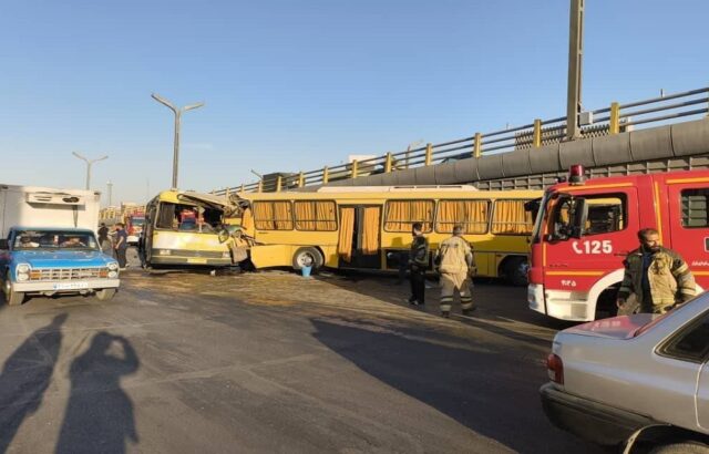 به دلیل برخورد دو اتوبوس در جاده مخصوص کرج ۲۶ نفر مصدوم شدند.